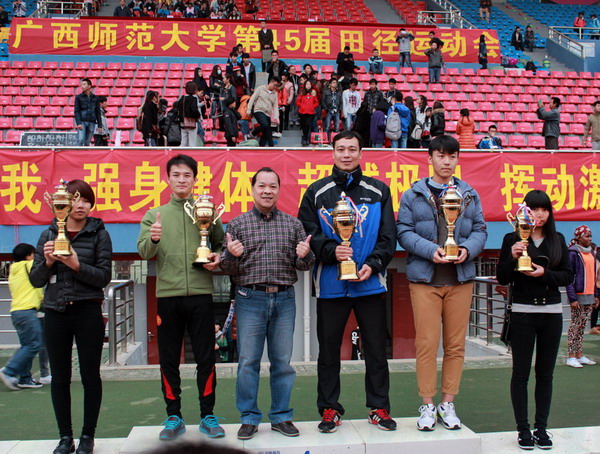 天公作美,云销雨霁,伴随着收获的季节,我们迎来了广西师大第四十五届田径运动会的隆重举行。11月15日下午17时许,历时三天的田径运动会在全校师生激情未减中圆满落下帷幕。