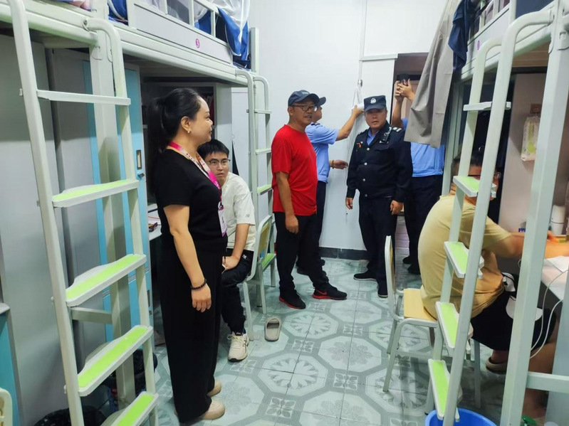 检查人员在针对电器安全使用、消防设施完好情况、安全出口畅通情况等重点环节开展细致排查的同时,还结合节日特点向同学们普及安全用电与应急逃生知识,共同筑牢学生公寓的安全防线。