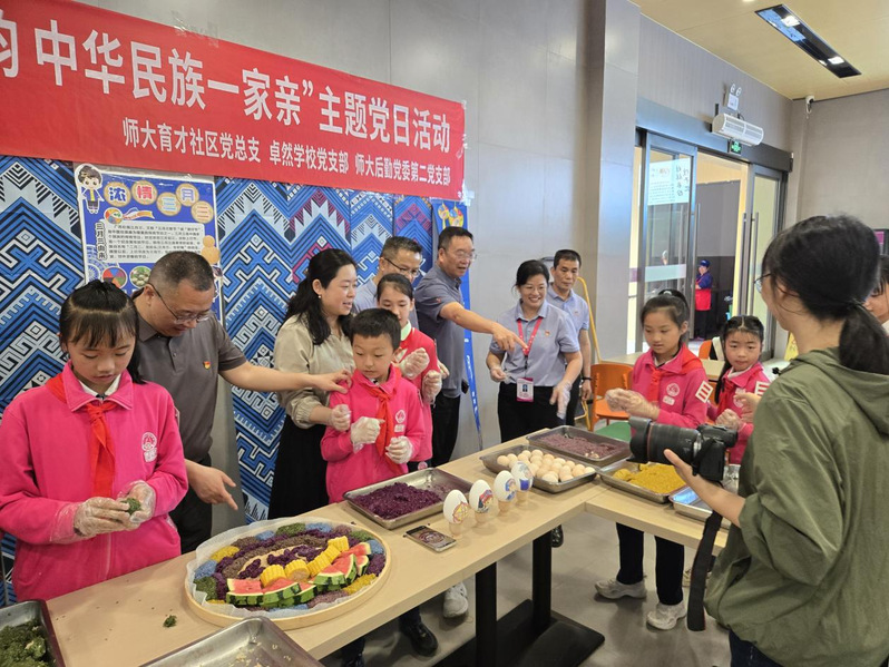春染漓水,艾草盈香。为弘扬中华优秀传统文化,增进师生情谊,4月14日上午,后勤党委第二党支部联合师大育才社区党总支、卓然学校党支部,共同开展“艾粑飘香传古韵 中华民族一家亲”主题党日活动。各支部党员、居民及学生代表齐聚一堂,在沉浸式体验中感受非遗美食的魅力,共庆传统佳节。